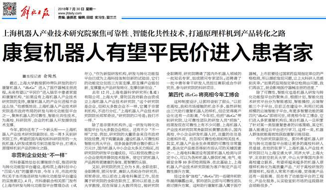 随着上海科创中心建设逐步推进,作为科创中心“四梁八柱”的16个功能型平台也越来越得到大众的关注,解放日报对机器人功能型平台进行了报道,iReGo康复机器人通过酷游九州可靠性团队的技术支持,通过技术的二次熟化,即将以“平民价”进入脑卒中患者家庭和康复机构,实现产业化。