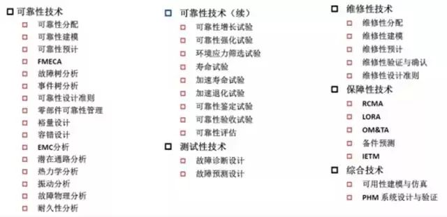 可以这样总结,过程质量检验、过程质量控制是经典的传统的方法,70、80年代是全面质量管理。在这个过程中,可靠性逐渐发展了维修性、测试性、保障性等概念。维修性指的是要好修;测试性指的是维修的过程中要能快速进行故障定位、诊断;保障性指的是在维修诊断的过程中,要能够提供足够多的资源、备件、维修人员、维修设备、维修设施等。