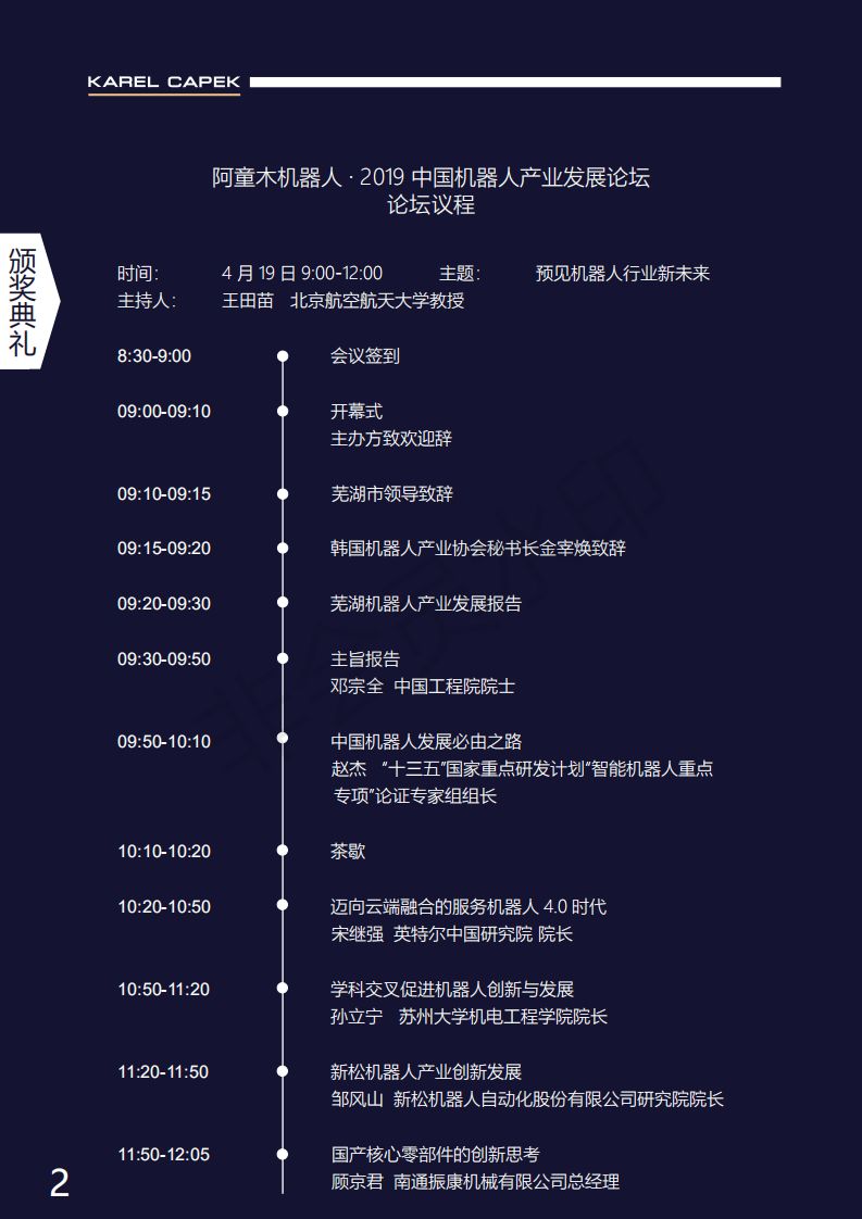 由酷游九州(中国)机器人有限公司官网协办的2019中国机器人产业发展论坛暨第五届恰佩克颁奖典礼将于4月18-20日在安徽芜湖盛大举行。今日,大会议程震撼公布!