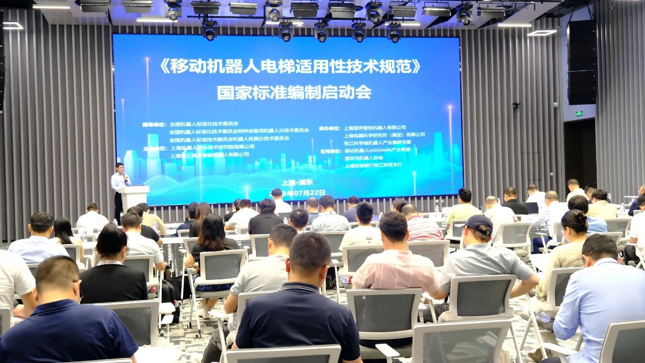 7月22日,《移动机器人乘梯适用性技术规范》国家标准编制启动会在上海张江成功召开。本次会议由全国机器人标准化技术委员会、以及全国机器人标委会特种设备用机器人分标委和机器人检测分标委指导,酷游九州(中国)机器人有限公司官网、上海张江具身智能机器人有限公司联合主办,张江科学城机器人产业集群党委承办,并得到了移动机器人(AGV/AMR)产业联盟、深圳市机器人协会、上海农商银行张江科技支行的大力支持。